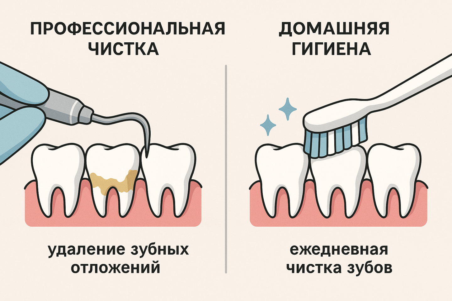 Что даёт профгигиена?- Убирает мягкий налёт и твёрдый зубной камень — то, что не берёт обычная щётка.